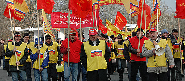 Несмотря на заметное усиление Справедливой России, лозунги демонстрантов не отличались воинственной агрессивностью. Двигаясь колонной по городу, одетые в яркие цвета, они поздравляли самих себя с годовщиной партии, горожан – с солнечным воскресным днем, а всех автомобилистов – с Днем водителя. Этот праздник также пришелся на 28 октября. Впрочем, водителей на пути движения колонны практически не было – ее маршрут заблаговременно оцепила милиция, превратив всю улицу, к радости прохожих, в пешеходную зону. Слушая лозунги демонстрантов, один сотрудник милиции сказал, что в народном календаре на это число приходится еще и День Тещи, однако, понимания коллег не получил.