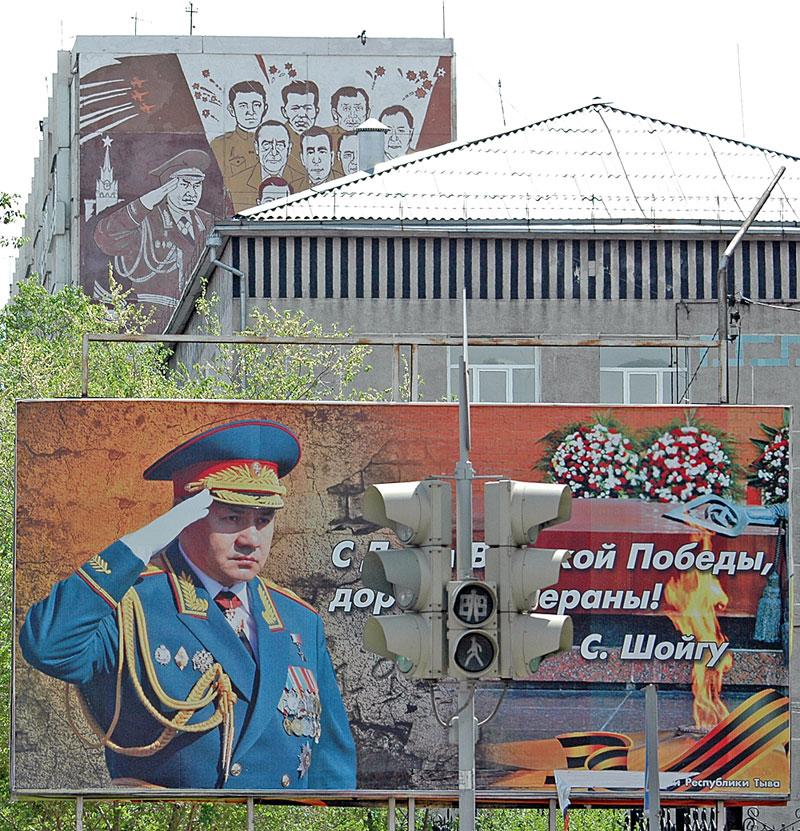 Описание: К 60-летию Сергея Шойгу столицу Тувы украсили изображениями Героя.