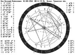 По совокупности показателей – самый слабый гороскоп из всех трех. Большие амбиции, но неумение самостоятельно их реализовывать. В сексуальном плане человек слабее, чем Ооржак, но сильнее, чем Донгак. Человек решительный, даже чересчур. Неумение быстро мыслить и хорошо говорить продиктовано оппозиционным расположением Меркурия и Сатурна. Удивленно-простоватое выражение лица продиктовано оппозиционным расположением Белой Луны, а также квадратуры Белой Луны к Солнцу и Луны к Солнцу. Негативное отношение Василия Майлоловича ко всем женщинам определяется оппозиционным расположением Солнца и Вакшьи. Оюн не умеет делать долгосрочные расчеты и выработать долгосрочную стратегию. Но при этом упорен и даже упрям.