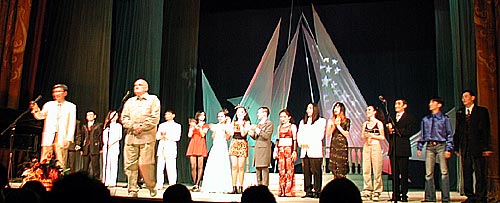 Несмотря на относительную дороговизну входных билетов (100 рублей), театр был полон. В программе значились церемония вручения дипломов выпускникам театральной академии и большой праздничный концерт всех выпускников разных лет этой академии. О политической значимости этого мероприятия свидетельствовали присутствие самого председателя правительства РТ Ш.Ооржака с супругой – незаменимой Сарой Монгушевной. Отметились своим присутствием и другие чиновники разных рангов и калибров типа министра культуры и по делам национальностей РТ Э.Данзына и других.