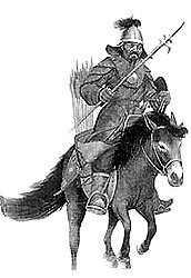 В своём стойбище хан Темучин принимал мусульманских купцов. Византийская парча, индийская золочёная посуда и персидские ковры пленяли взор степных красавиц. Взгляды багатуров притягивали доспехи – юшманы и бехтерцы, испещрённые золотым узором шлемы и отделанные рубинами и бирюзой серебряные щиты. Темучин с благоговением взял блестящий клинок – рукоять слоновой кости инкрустирована золотом, отливающее пурпуром лезвие круто изогнуто. Вопросительно глянул на купца – монголы сражались тяжёлыми, выкованными из сырой стали палашами.