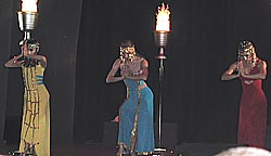 Но не все гости разошлись по комнатам, в зале остались лишь трое музыкантов. Они собрались вместе после долгих лет разлуки и теперь готовы удивить гостей игрой на барабанах. Но нужна репетиция – и вот зал наполняется магическими звуками этих инструментов. Никогда ещё музыканты не испытывали такого вдохновения. Одна из статуй начинает шевелиться и сходить с подиума. О! Да она живая! И вот уже на сцене сама Елена Троянская! Следом за ней оживают Клеопатра и Таис Афинская. Окруженные гетерами, они исполняют танец Жриц Любви.