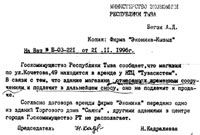 Но на все обращения владелец и арендодатель сооружения – Госкомимущество РТ – отвечал отказом. Так, 30 декабря 1996г. письмом №1-1114 председатель Н.Кадралиева заявила: