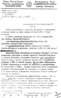 А затем О.Байыр-оол сообщает: «Для оформления документов нужно... получить разрешение на закрепление земельного участка, сдать в эксплуатацию и получить Постановление об утверждении Акта приемки в эксплуатацию и постановки на баланс».