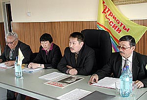 Затем были заданы вопросы. Представителей правительственных электронных и печатных СМИ, несмотря на официальные приглашения, не было. Чувствовалось, что поскольку Ш.Ооржак уже пообещал в Туве обеспечить «ЕР» 80% голосов, и потому деятельность других партий в республике ему вряд ли нравится. Впрочем, отсутствие правительственных журналистов на мероприятии не омрачало и даже расковало его участников. Прозвучали самые разные вопросы.