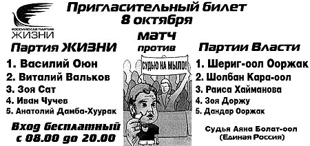 Тувинские ПЕдРосы – люди удивительной судьбы. Один развалил экономику республику и приватизировал почти все государственные объекты. Другой заворовался. Третий до госслужбы бандитствовал, промышляя рэкетом, похищением людей и контролем ввоза в республику технического спирта. У четвертой сын служит в банде адвокатом, а она держит дома аттестаты зрелости, оформленные на предъявителя. Одномандатники – сплошь жулье, присосавшееся к бюджетному корыту. Как таким кандидатам добиться голосов избирателей? Понятно, как: фальсификацией выборов и устранением возможных политических конкурентов. Вот ПЕдРосы и кинулись в суд с просьбой снять с выборов главного конкурента – Российскую партию Жизни.