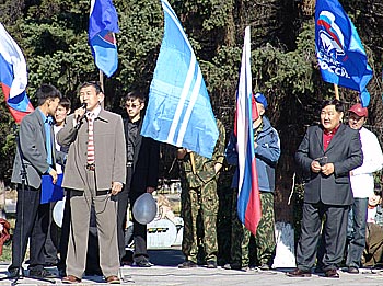 Но неделю спустя, невзирая на строящейся барабан, тот же мэр дал «добро» на митинг ПЕдРосов, посвященным Дню студента, на той самой площади Арата. Партии власти – можно. И стройка не помеха. Другим партиям – нельзя. Такова политика двойных стандартов, демонстрируемая властью. «Медведи» решили поразить кызылчан своей массовостью и согнали на площадь всех кривых-косых-горбатых. Учащихся, студентов, бюджетников и зевак. Загнали даже известных городских сумасшедших. Сказать организаторам мероприятия было нечего, и они маршем прошествовали на стадион, убеждая себя в своей силе и организованности.