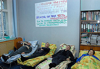 Свою солидарность и готовность присоединиться к начавшим голодовку коллегам выразили уже избранные депутаты обеих палат парламента. Иван Чучев, Зоя Сат, Борис Балчий-оол, Вячеслав Ушкалов и Сергей Сафрин проводят голодовку в одном из кабинетов здания Великого Хурала. Самым молодым из них является Сергей Сафрин, ему 45 лет, самому пожилому Ивану Васильевичу Чучеву – 68 лет. Интересно, что у Бориса Балчий-оола голодовка началась в юбилейный день – 17 марта ему исполнилось 55 лет.