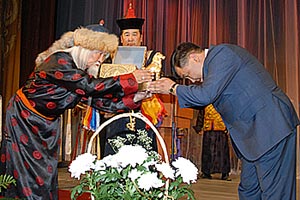 Впрочем, даже не все приглашенные из числа местной элиты удосужились прийти, и зал театра местами зиял приличными проплешинами. А «тувинские» сенаторы в последний момент прибыли то ли с рыбалки, то ли с пикника и на сцене выглядели не совсем свежими. И даже ущербный депутат Госдумы Ч.Ондар демонстративно не осветил мероприятие своим присутствием.