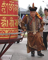 Появление Ш.Кара-оола на площади в тувинской национальной одежде торжественно приветствовали борцы, девушки в национальных одеяниях и средневековые воины на молодцеватых красивых конях. Новый Глава Тувы, одетый в национальные одежды, три раза торжественно обошел Буддийское колесо счастья и удачи, расположенное в центре площади. Потом Ш.Кара-оол последовал за С.Шойгу к парадному крыльцу Тувмуздрамтеатра, где и должны были происходить основные мероприятия. Создавалось прочное впечатление, что Сергей Кужугетович лично торит своему протеже дорогу во власть. Там их уже торжественно встречали ламы с белыми кадаками.